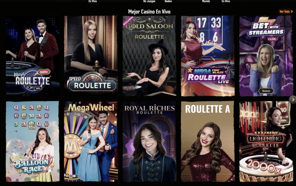 - Gran variedad de juegos de casino en vivo y tragaperras