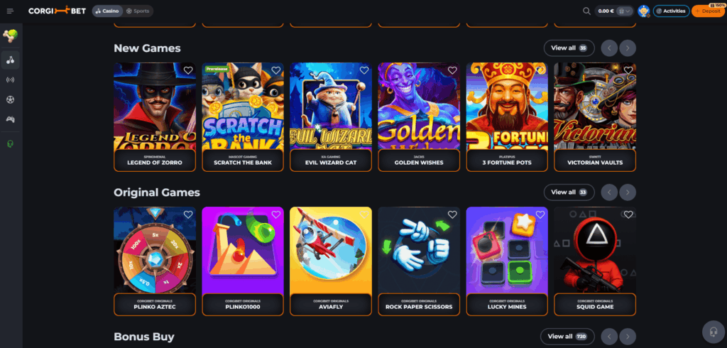 Selección de Juegos en Corgibet Casino