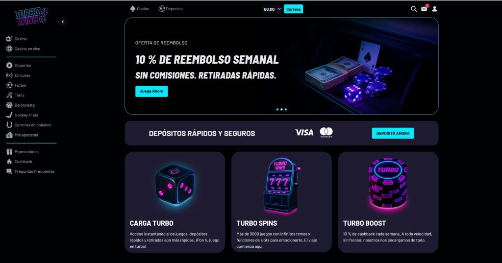 TurboWins es un sitio de apuestas con enfoque deportivo. Si lo que buscas es variedad de deportes, cuotas decentes y retiros rápidos con crypto, aquí lo encuentras. El casino está bien, pero no es el protagonista.