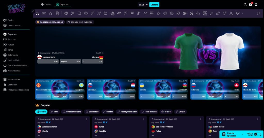 TurboWins es una casa de apuestas online que llegó al mercado en 2025 con una propuesta clara: apuestas deportivas serias y un casino como complemento. Opera bajo licencia de Anjouan y pertenece a Igloo Ventures SRL. El foco principal está en el deporte: más de 40 disciplinas, ligas internacionales, apuestas en vivo y herramientas profesionales.